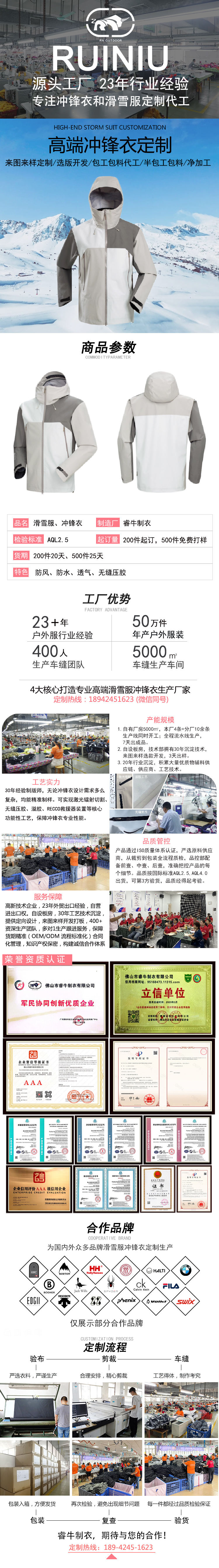 持續23年專注沖鋒衣、滑雪服定制加工廠家