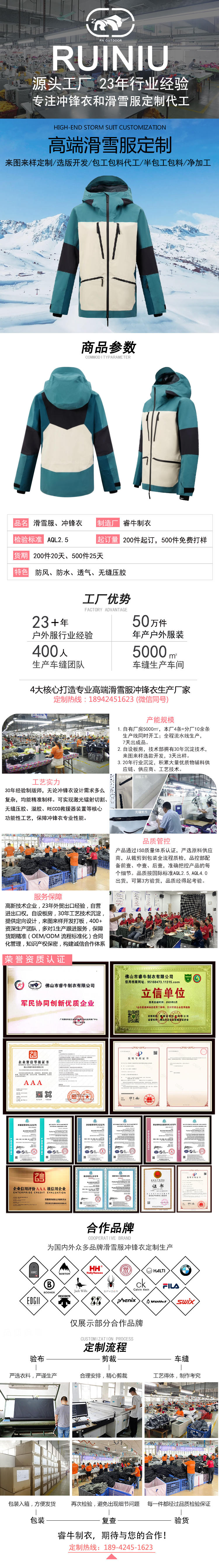 持續23年專注沖鋒衣、滑雪服定制加工廠家