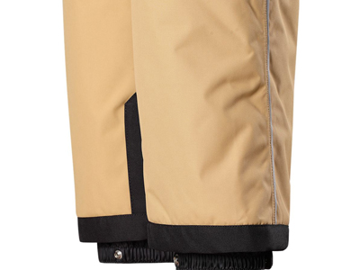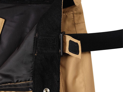 褲腰設計:戶外滑雪褲加工的背帶與褲子鏈接處采用調節扣鏈接,帶子末端魔術貼加固,安全放心。