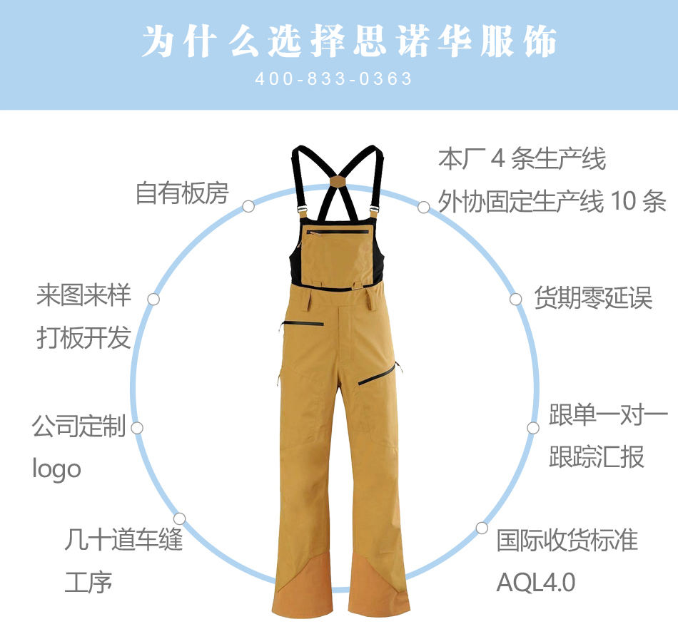 思諾華服飾—廠家防水壓膠滑雪褲加工生產